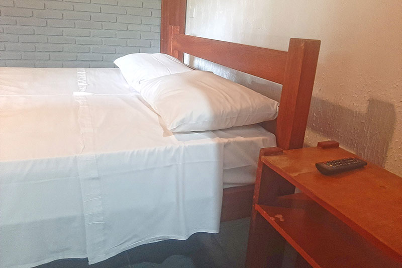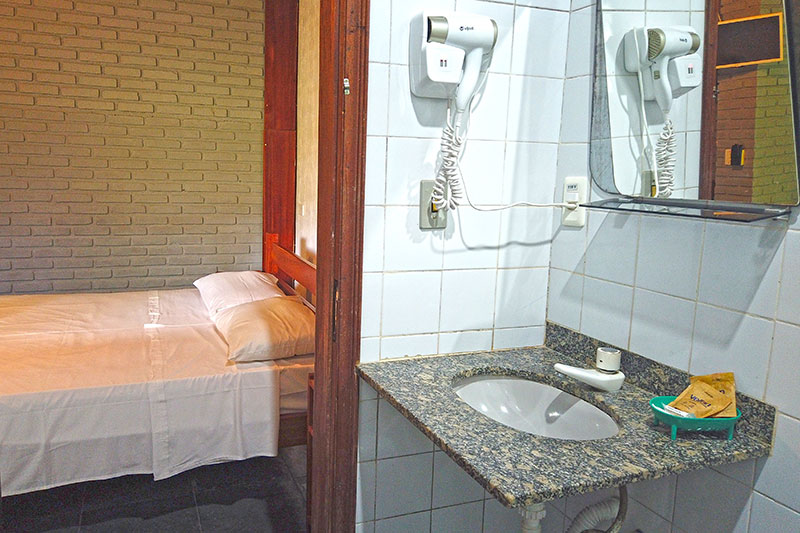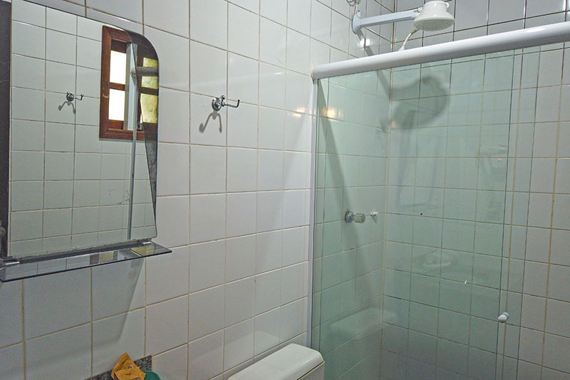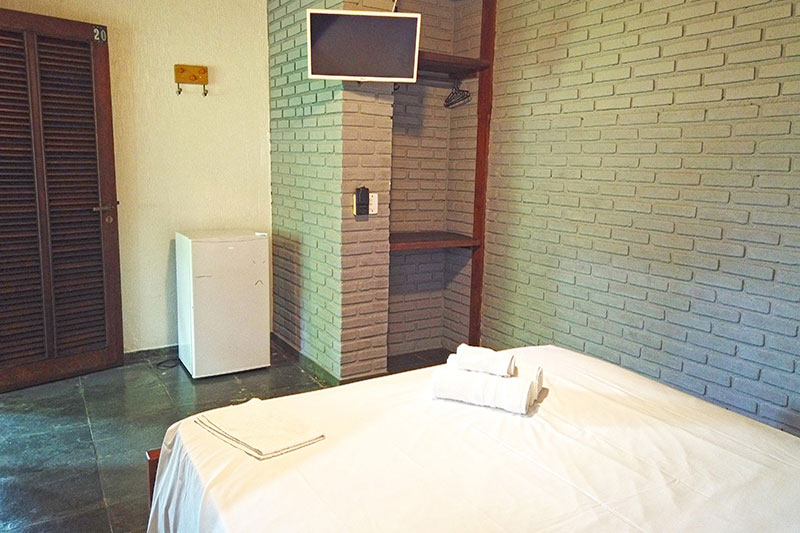 Ampla sala com cozinha americana equipada, geladeira duplex, microondas, fogão, 01 suíte com cama de casal, Tv e ar condicionado e banheiro com box blindex, 01 suíte com cama de casal, TV, varanda e 01 quarto com cama de casal e banheiro com box blindex e varanda exclusiva com vista para a piscina.